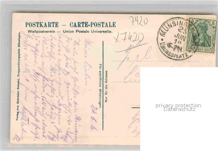 42845614 alte Postkarte Muensingen Truppenuebungsplatz Baracken postalisch gelaufen Erhaltung siehe scans [WerneD78] KatCode: 11110008415053