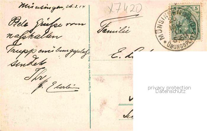 42886969 alte Postkarte Muensingen Truppenuebungsplatz Eingang Barackenlager postalisch gelaufen Erhaltung siehe scans [NatalD47] KatCode: 11110008415053