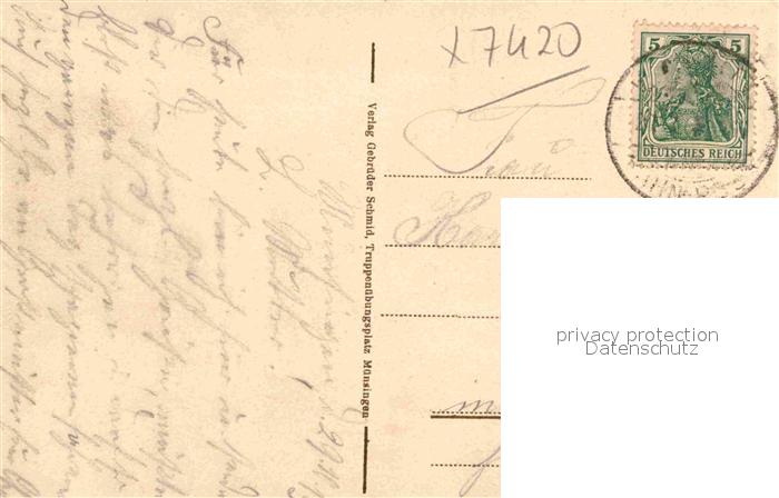 42886970 alte Postkarte Muensingen Truppenuebungsplatz Militaer postalisch gelaufen Erhaltung siehe scans [NatalD47] KatCode: 11110008415053