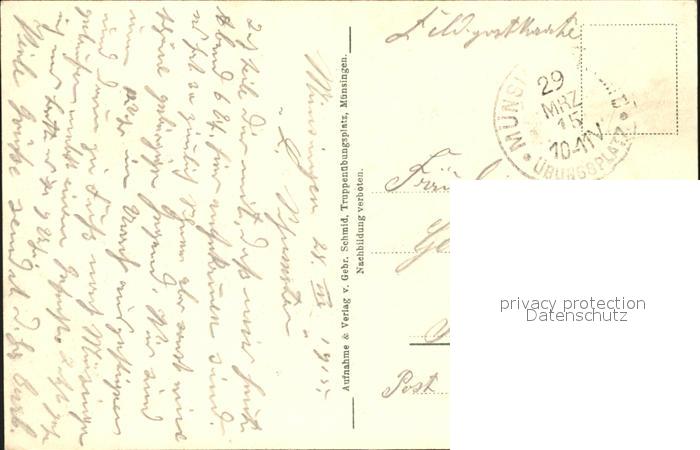 31731110 alte Postkarte Muensingen Tuppenuebungsplatz Lagereingang postalisch gelaufen Feldpost Erhaltung siehe scans KatCode: 11110008415053