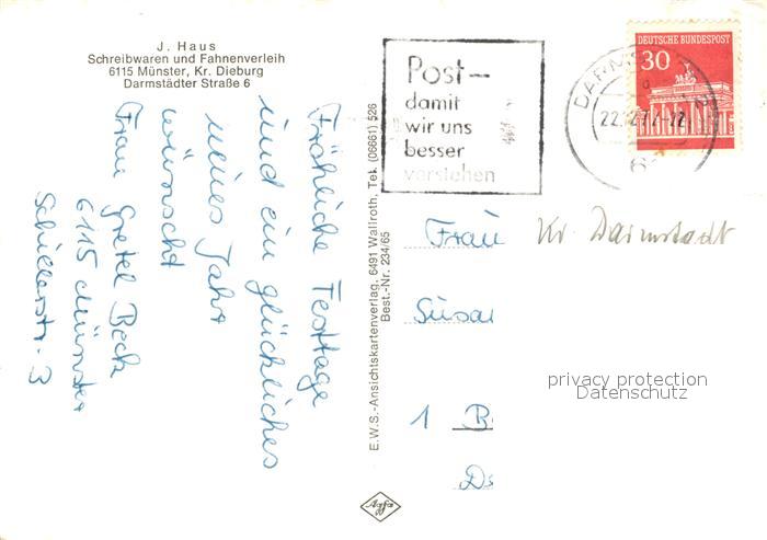 73098683 alte Postkarte Muenster Dieburg Kirche Firma Haus postalisch gelaufen Erhaltung siehe scans [KathaD81] KatCode: 11110006432015