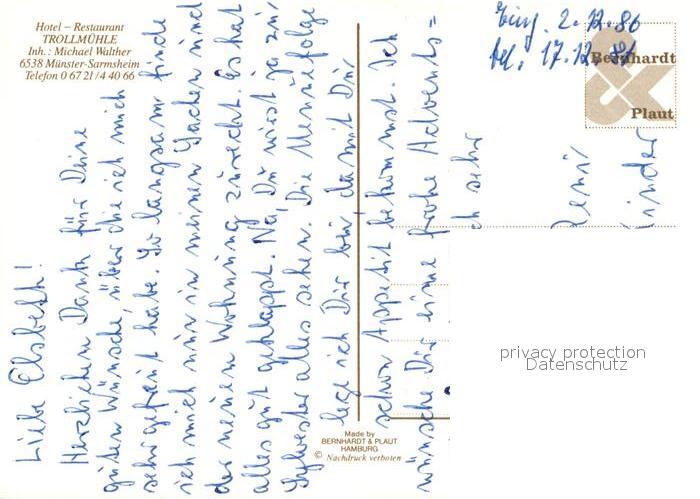 72971330 Muenster-Sarmsheim Hotel-Restaurant Trollmuehle postalisch nicht gelaufen Erhaltung siehe scans [PaolaD17] KatCode: 11110007339038