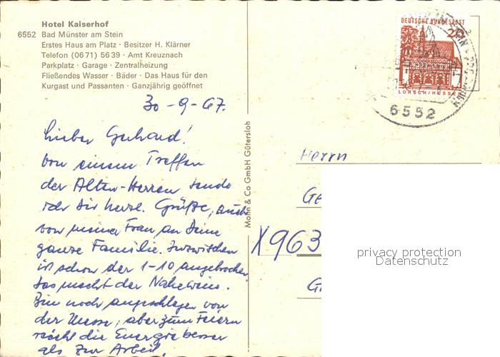 72455158 alte Postkarte Muenster Stein Hotel Kaiserhof postalisch gelaufen Erhaltung siehe scans KatCode: 11110007133006
