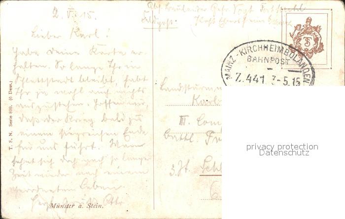 41756467 alte Postkarte Muenster Stein Panorama Bahnpost Kuenstlerkarte postalisch gelaufen Erhaltung siehe scans KatCode: 11110007133006