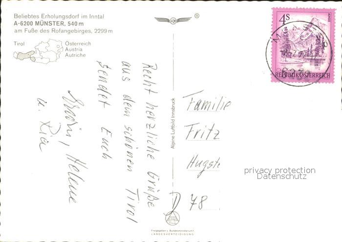 72609615 alte Postkarte Muenster Tirol Fliegeraufnahme Inntal Rofangebirge postalisch gelaufen Erhaltung siehe scans [LiesaD40] KatCode: 11390335070517