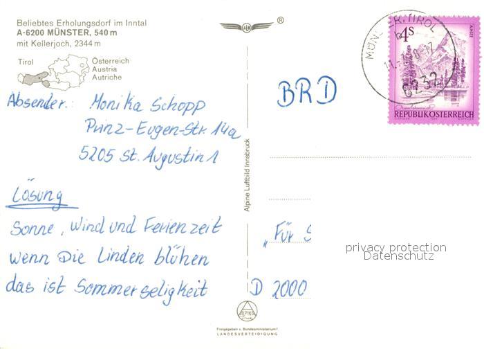 13213567 alte Postkarte Muenster Tirol Fliegeraufnahme mit Kellerjoch postalisch gelaufen Erhaltung siehe scans [LiesaD40] KatCode: 11390335070517