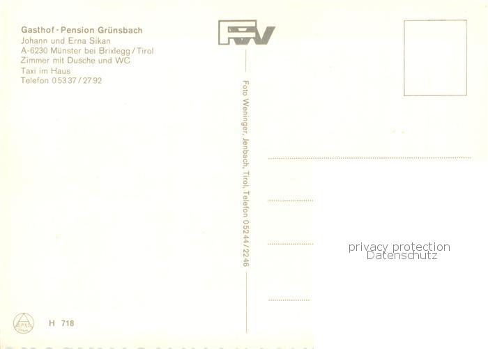 73766701 Muenster Tirol Gasthof Pension Gruensbach Pool postalisch nicht gelaufen Erhaltung siehe scans [WerneD78] KatCode: 11390335070517