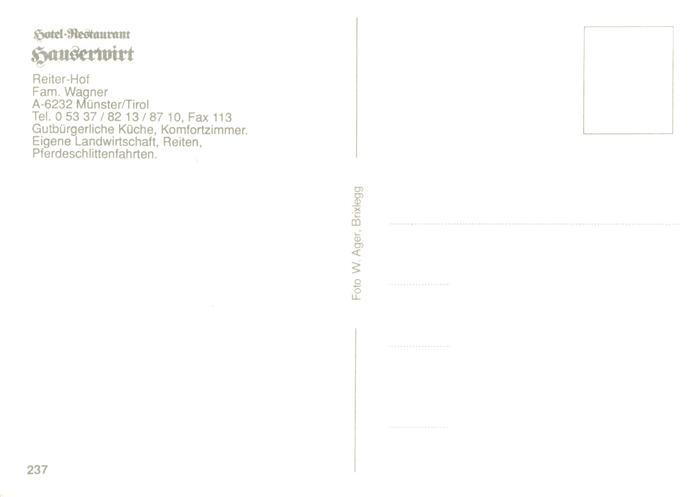 73901322 Muenster Tirol Hotel Restaurant Hauserwirt Pferdebus postalisch nicht gelaufen Erhaltung siehe scans [WerneD78] KatCode: 11390335070517