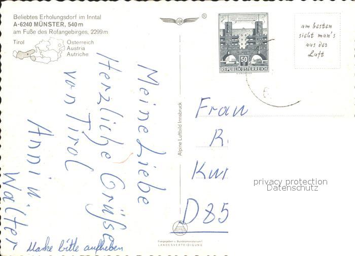 72072077 alte Postkarte Muenster Tirol Kaisergebirge Fliegeraufnahme postalisch gelaufen KatCode: 11390335070517