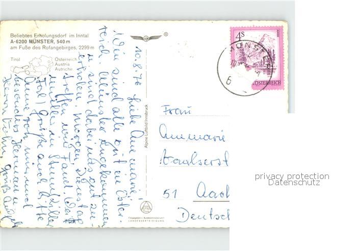 72081084 alte Postkarte Muenster Tirol Panorama mit Rofangebirge Fliegeraufnahme postalisch gelaufen Erhaltung siehe scans KatCode: 11390335070517