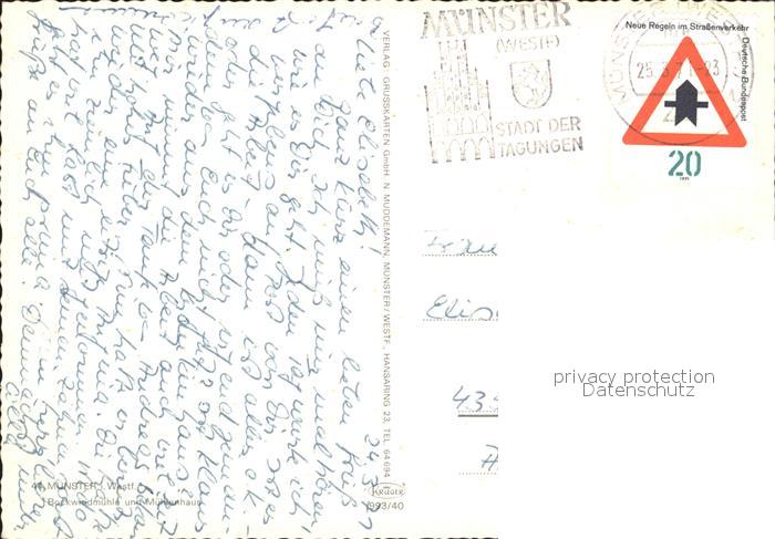 72200730 alte Postkarte Muenster Westfalen Bockwindmuehle Muehlenhaus postalisch gelaufen Erhaltung siehe scans KatCode: 11110005515000