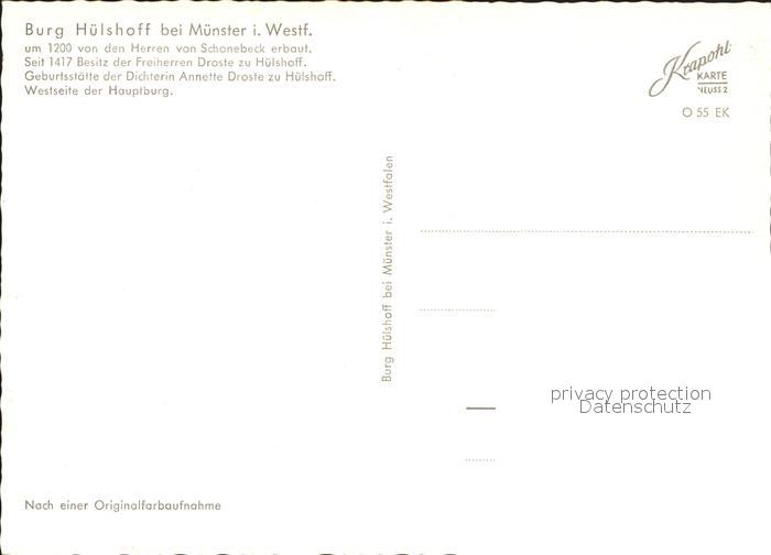 72181160 Muenster Westfalen Burg Huelshoff postalisch nicht gelaufen Erhaltung siehe scans KatCode: 11110005515000