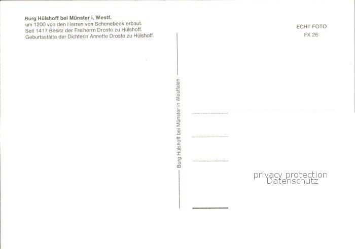 72204179 Muenster Westfalen Burg Huelshoff postalisch nicht gelaufen Erhaltung siehe scans KatCode: 11110005515000