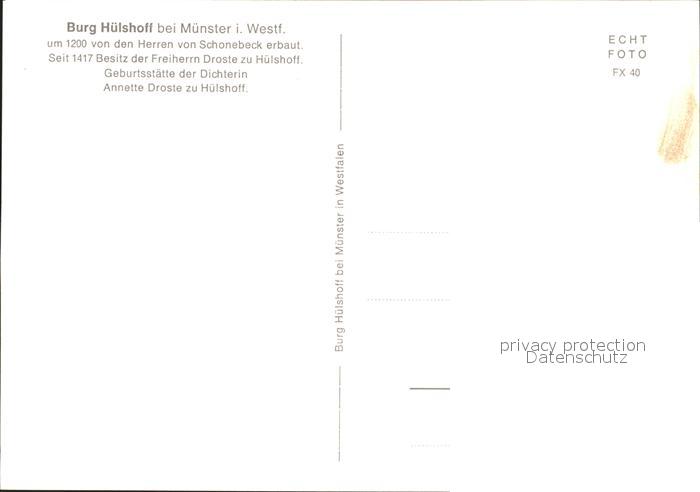 72204178 Muenster Westfalen Burg Huelshoff postalisch nicht gelaufen Erhaltung siehe scans KatCode: 11110005515000