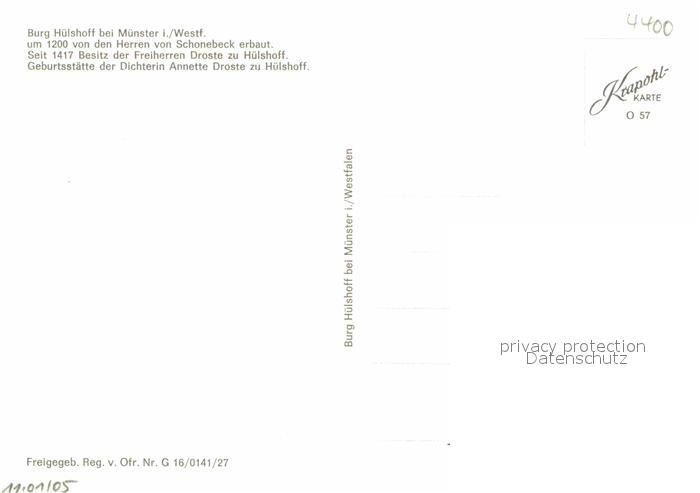 72912300 Muenster Westfalen Burg Huelshoff Fliegeraufnahme postalisch nicht gelaufen Erhaltung siehe scans [FriedD77] KatCode: 11110005515000