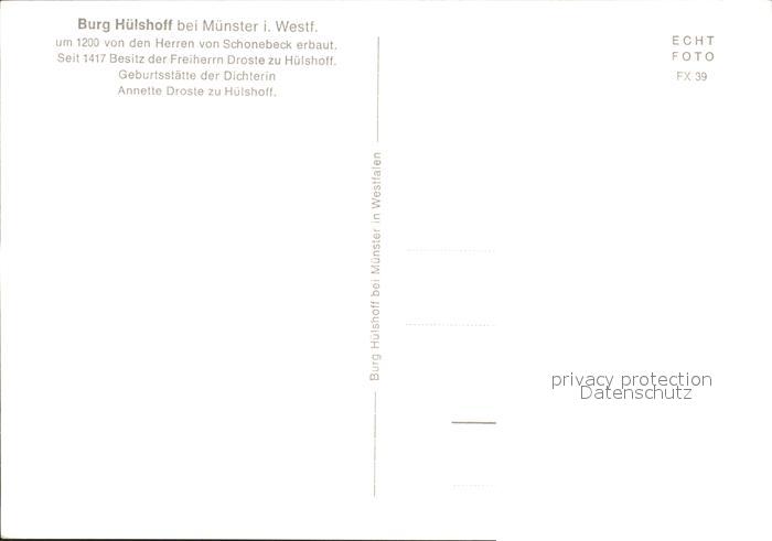 72201665 Muenster Westfalen Burg-Huelshoff Geburtsort Dichterin Annette Droste zu Huelshoff postalisch nicht gelaufen Erhaltung siehe scans KatCode: 11110005515000