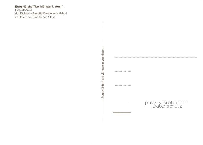 73182598 Muenster Westfalen Burg Huelshoff Wasserschloss Geburtshaus der Dichterin Annette Droste zu Huelshoff postalisch nicht gelaufen Erhaltung siehe scans [FriedD77] KatCode: 11110005515000