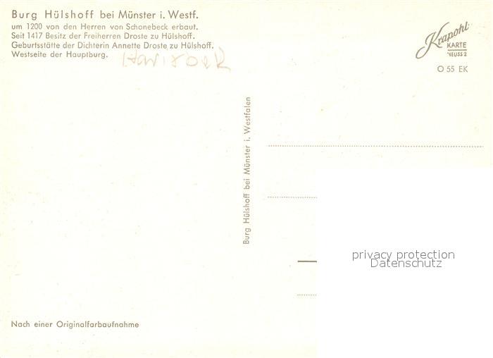 73182597 Muenster Westfalen Burg Huelshoff Wasserschloss Geburtshaus der Dichterin Annette Droste zu Huelshoff postalisch nicht gelaufen Erhaltung siehe scans [FriedD77] KatCode: 11110005515000