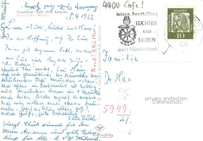 73701494 alte Postkarte Muenster Westfalen Conditorei Cafe Otto Schucan postalisch gelaufen Erhaltung siehe scans [LiesaD40] KatCode: 11110005515000