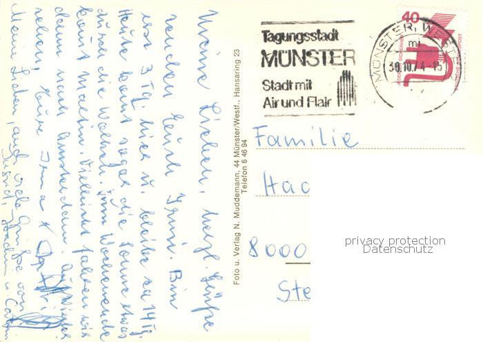 73780533 alte Postkarte Muenster Westfalen Der Aa-See Segeln Ruderboot Anleger postalisch gelaufen Erhaltung siehe scans [FriedD77] KatCode: 11110005515000