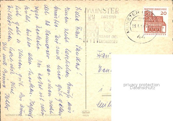 71987805 alte Postkarte Muenster Westfalen Der Kiepenkerl postalisch gelaufen Erhaltung siehe scans KatCode: 11110005515000