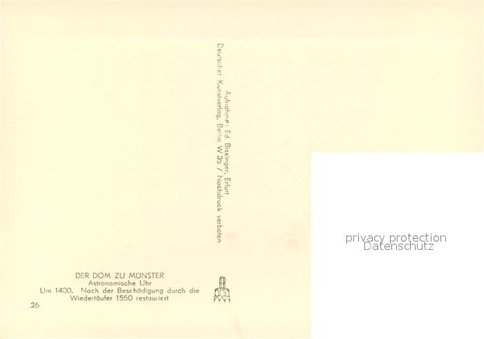 73624436 Muenster Westfalen Dom Astronomische Uhr Nach Beschaedigung durch die Wiedertaeufer restauriert postalisch nicht gelaufen Erhaltung siehe scans [FriedD77] KatCode: 11110005515000