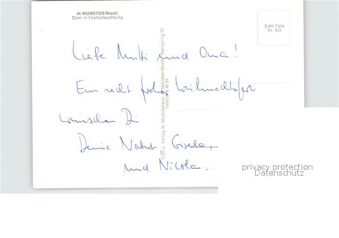 72493124 Muenster Westfalen Dom in Festbeleuchtung postalisch nicht gelaufen Erhaltung siehe scans KatCode: 11110005515000