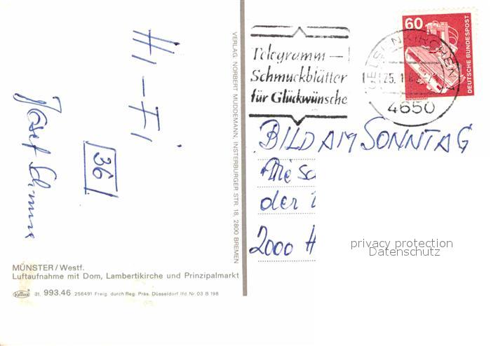 72837154 alte Postkarte Muenster Westfalen Dom Lambertikirche Prinzipalmarkt Fliegeraufnahme postalisch gelaufen Erhaltung siehe scans [FriedD77] KatCode: 11110005515000