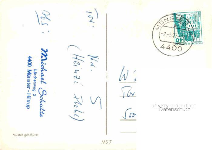 72745948 alte Postkarte Muenster Westfalen Dom Prinzipalmarkt Aasee Burg Huelshoff Rathaus Bockwindmuehle Bahnhof Theater postalisch gelaufen Erhaltung siehe scans [FriedD77] KatCode: 11110005515000