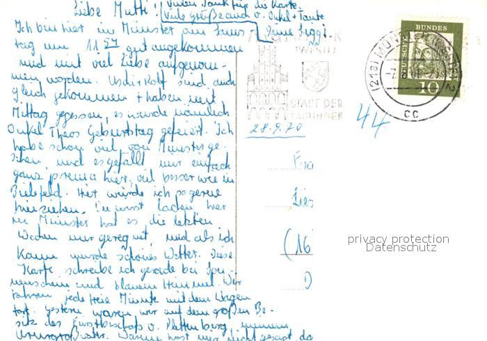 73294041 alte Postkarte Muenster Westfalen Domplatz Stadtweinhaus Aasee postalisch gelaufen Erhaltung siehe scans [NatalD47] KatCode: 11110005515000