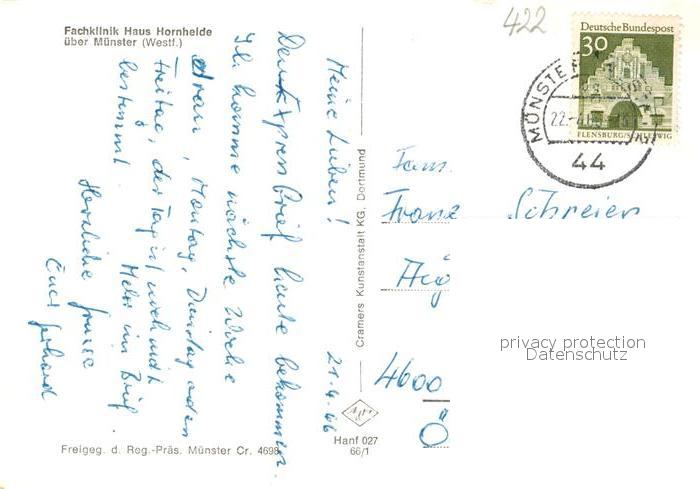 73164215 alte Postkarte Muenster Westfalen Fachklinik Haus Hornheide Fliegeraufnahme postalisch gelaufen Erhaltung siehe scans [FriedD77] KatCode: 11110005515000