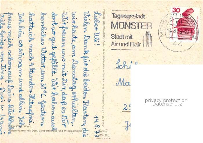 72665799 alte Postkarte Muenster Westfalen Fliegeraufnahme postalisch gelaufen Erhaltung siehe scans [LiesaD40] KatCode: 11110005515000