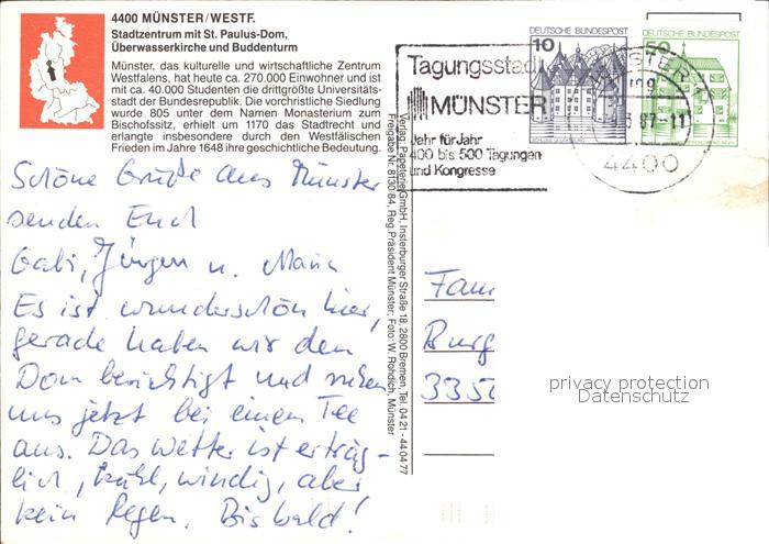 alte Postkarte Muenster Westfalen Fliegeraufnahme Altstadt mit Dom Buddenturm ueberwasserkirche postalisch gelaufen Erhaltung siehe scans