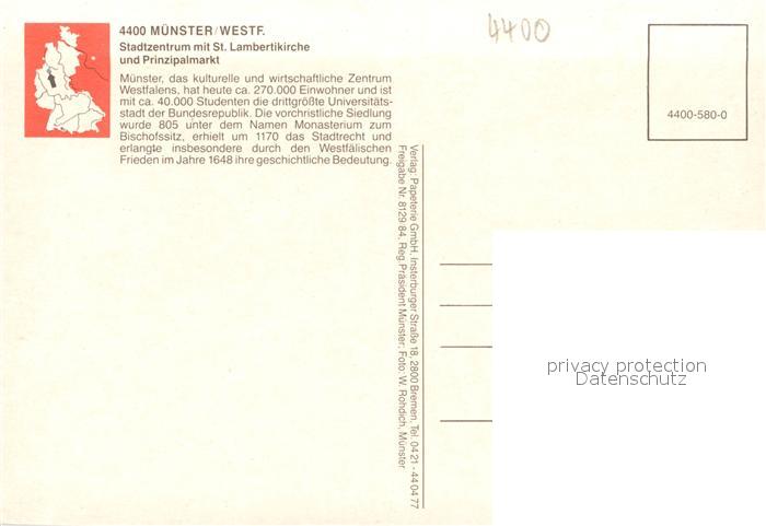 73175650 Muenster Westfalen Fliegeraufnahme Altstadt St. Lambertikirche Prinzipalmarkt postalisch nicht gelaufen Erhaltung siehe scans [LiesaD40] KatCode: 11110005515000