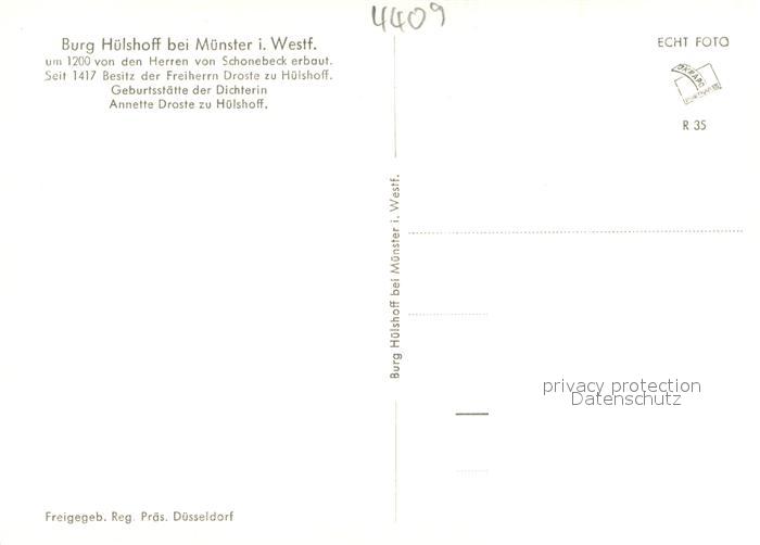 73702605 Muenster Westfalen Fliegeraufnahme Burg Huelshoff postalisch nicht gelaufen Erhaltung siehe scans [LiesaD40] KatCode: 11110005515000