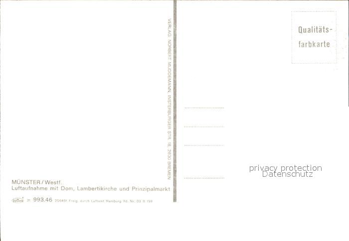 72447389 Muenster Westfalen Fliegeraufnahme Dom Lambertikirche Prinzipalmarkt postalisch nicht gelaufen Erhaltung siehe scans KatCode: 11110005515000
