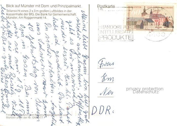 73796028 Muenster Westfalen Fliegeraufnahme mit Dom und Prinzipalmarkt postalisch gelaufen Erhaltung siehe scans [WerneD78] alte Postkarte Wern Katcode 11110005515000