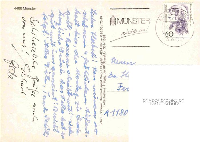 72904405 alte Postkarte Muenster Westfalen Fliegeraufnahme mit See postalisch gelaufen Erhaltung siehe scans [LiesaD40] KatCode: 11110005515000