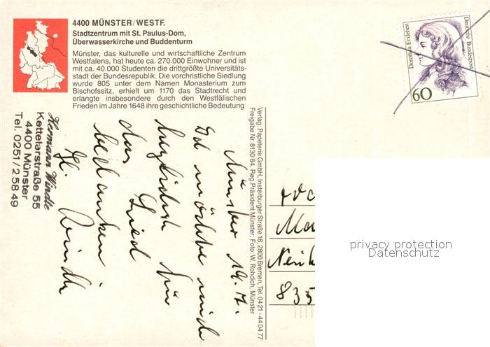 73030475 alte Postkarte Muenster Westfalen Fliegeraufnahme Paulus Dom postalisch gelaufen Erhaltung siehe scans [KathaD81] KatCode: 11110005515000