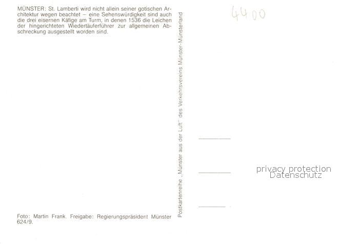 73175605 Muenster Westfalen Fliegeraufnahme St. Lamberti postalisch nicht gelaufen Erhaltung siehe scans [LiesaD40] KatCode: 11110005515000