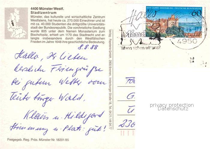 72888834 alte Postkarte Muenster Westfalen Fliegeraufnahme Stadtzentrum postalisch gelaufen Erhaltung siehe scans [AndreD76] KatCode: 11110005515000