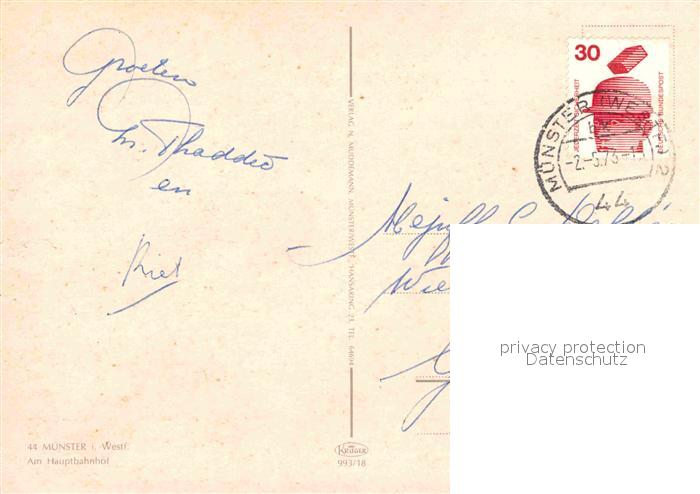 72870466 alte Postkarte Muenster Westfalen Hauptbahnhof postalisch gelaufen Erhaltung siehe scans [LiesaD40] KatCode: 11110005515000