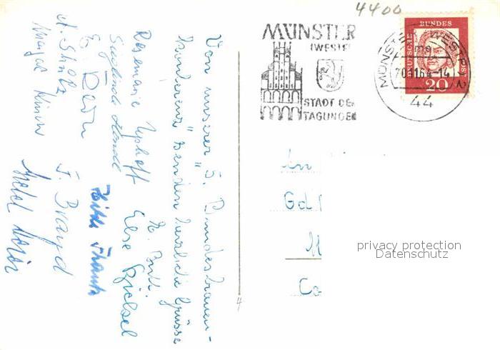 72795555 alte Postkarte Muenster Westfalen Hauptbahnhof Rathaus Prinzipalmarkt Dom Lamberti postalisch gelaufen Erhaltung siehe scans [LiesaD40] KatCode: 11110005515000