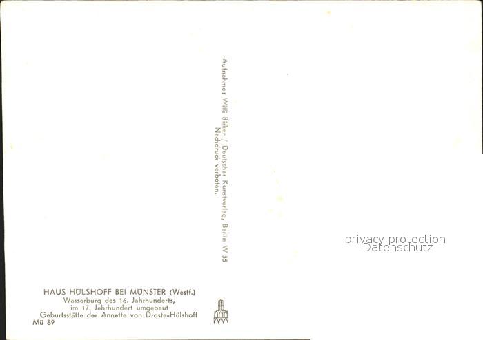 72254986 Muenster Westfalen Haus Huelshoff postalisch nicht gelaufen Erhaltung siehe scans KatCode: 11110005515000