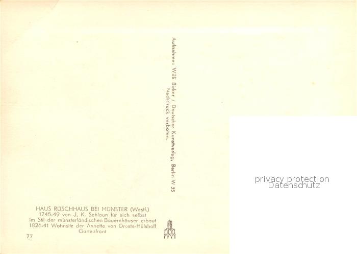 72986745 Muenster Westfalen Haus Rueschhaus ehemaliges Wohnsitz Annette von Droste Huelshoff postalisch nicht gelaufen Erhaltung siehe scans [LiesaD40] KatCode: 11110005515000