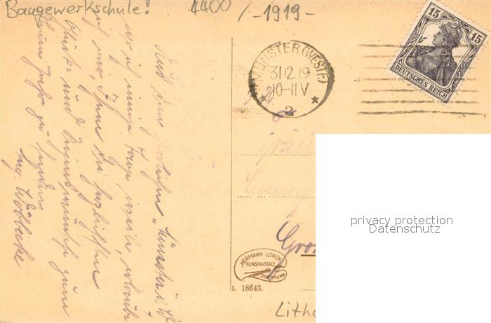 73700881 alte Postkarte Muenster Westfalen Kanonengraben mit Baugewerkschule postalisch gelaufen Erhaltung siehe scans [FriedD77] KatCode: 11110005515000
