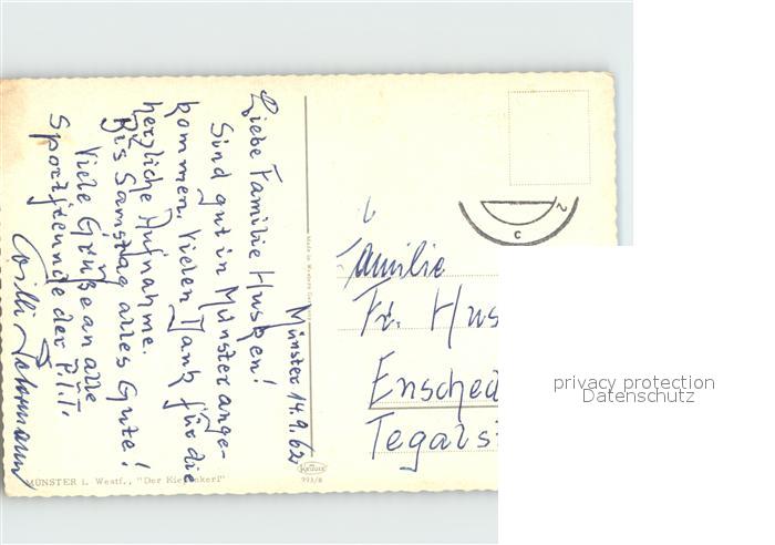 72330183 alte Postkarte Muenster Westfalen Kiepenkerl Brunnen postalisch gelaufen Erhaltung siehe scans KatCode: 11110005515000