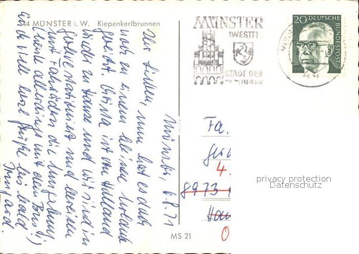 72415967 alte Postkarte Muenster Westfalen Kiepenkerlbrunnen postalisch gelaufen Erhaltung siehe scans KatCode: 11110005515000