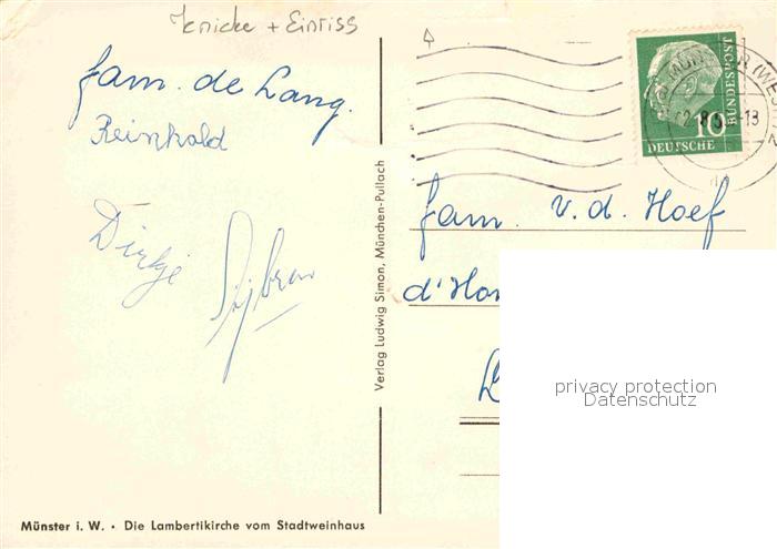 72901212 alte Postkarte Muenster Westfalen Lambertikirche postalisch gelaufen Erhaltung siehe scans [PaolaD17] KatCode: 11110005515000