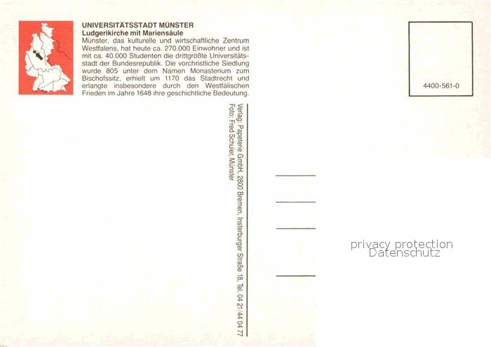 72785857 Muenster Westfalen Ludgerikirche mit Mariensaeule postalisch nicht gelaufen Erhaltung siehe scans [WerneD78] KatCode: 11110005515000